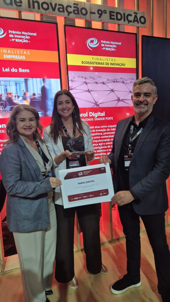 O Farol Digital consolidou João Pessoa como um dos principais polos de inovação do país ao conquistar destO ecossistema de inovação Farol Digital, sediado em João Pessoa, alcançou um marco histórico ao ser reconhecido como um dos três melhores ecossistemas de grande porte do Brasil durante o Congresso Nacional de Inovação, realizado nesta quinta-feira (26), em São Paulo. A premiação, promovida pela Confederação Nacional da Indústria (CNI), com apoio do Serviço Brasileiro de Apoio às Micro e Pequenas Empresas, reuniu mais de 1.500 iniciativas de todo o país, consolidando o Farol Digital como uma referência nacional no setor.